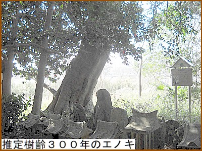 推定樹齢400年のスダジイと推定樹齢300年のエノキ