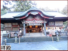 (左)、神楽殿、左手に手水舎と続く。 随神門は元文元年