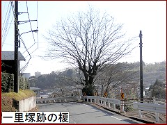 道路際の大木は 「一里塚榎」(左)。ここに一里塚があったということだが今は榎の大木だけがその存在を示している。