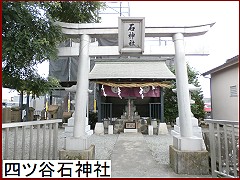 交差点を左へ曲がって向かった先は県道54号と交わる交差点際の「四ツ谷石神社」(左)。由緒によると寛永6年(1629)に四ツ谷集落の守神として奉られたもので、社殿が石造りであることから石神社と呼ばれるようになったようだ。境内に多数の石仏石塔があるが、その中の「不動明王道標」(左)に「 是方 大山道 」と刻まれている。