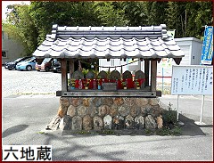 さらに15分ほど歩くと県道は右へ曲がって行くが姫街道は真っ直ぐ。次の十字路向うに見えるのは「六地蔵」(右)。 うしろの竹藪はその昔 刑場があった場所。 その霊を慰めるためのもので正徳2年(1771)の建立。 |