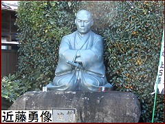 その「近藤勇像」(右)が西調布駅近くの西光寺にあるというので見に行くことに。京王線の踏切りを渡り旧甲州街道に入るとすぐだ。この渋~い顔がいいね~ 西光寺の仁王門(鐘楼門)は宝永年間(1704~10)に建てられたもので二階に吊るされている梵鐘は下野国天明の鋳物師によって享保2年(1717)に鋳造されたもの。