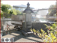 街道に戻り100mほど先の安養寺参道に入ると「庚申塔」(左)が3基。真ん中の庚申供養塔は寛文5年(1665)に建てられたもので、旧北多摩郡では最古のもの。