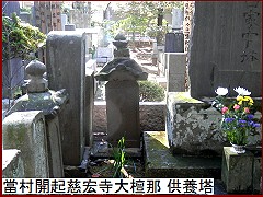 村の開発と慈宏寺開創に尽力した大檀那4名の供養塔だが往時を知る貴重な資料。これは杉並区指定の文化財。 |