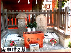 境内に「庚申塔が2基」(右)。元禄3年(1690)と元禄6年(1693)に建立されたもの。今も大事にされている。 |