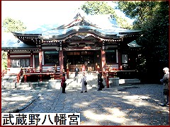 参道奥の 「武蔵野八幡宮」(右) は寛文年間(1661~72)に当地へ遷座したと伝えられているが神社としての歴史は古い。延暦8年(789)、坂上田村麻呂が宇佐八幡大神の分霊を江戸水道橋付近に祀ったと伝えられるが明暦の大火後に付近の住民が当地へ移住した際、村の鎮守として遷座。 |