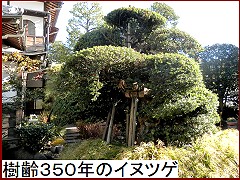 稲荷神社の隣、源正寺の本堂前にある「イヌツゲ」(左)は寛文3年(1663)ごろ植栽されたというから樹齢がざっと350年。写真では分かりずらいが節くれだった幹に年輪の重さを感じる。 境内に味のある庚申塔が。