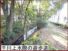 造られた千川上水、玉川上水が今も健在。五日市街道は上水に沿っているので ここを歩く場合は上水際の遊歩道がお勧め。 |