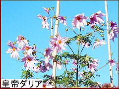 二日目のスタートは小金井公園前から。公園入口でカメラを空に向けて写真を撮る人が何人も。近寄ってみると「皇帝ダリア」(左)が真っ盛り。思わず一枚。