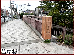 ほどなく見えたのは「茜屋橋」(左)という なんともロマン溢れる名前の橋。 説明碑によると最初に架けられたのは明治初年(1868)で3本の丸太を渡した簡単なも。 では何故 茜屋橋なのか。かつてこの辺りは茜草(染料)の栽培が盛んで、その総元締めの島田家を茜屋と呼んでいたが その茜屋が架けた橋なので茜屋橋。ロマンとはちょっと遠いかな。