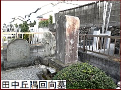 ここには江戸時代を代表する民政家の一人「田中丘隅回向墓」(左)がある。著述した民間省要 が将軍吉宗上覧に達したことを契機に地方役人に抜擢。武蔵国の幕領支配にもあたっていた。