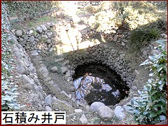 地面をすり鉢状に掘り進み螺旋状の道を付けた石積みの井戸で、中世(平安時代末期から安土桃山時代)に構築されたと推定されている。発掘・復元されたものであるが今でも使われていそうな。 |