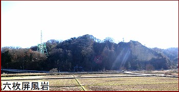 秋川沿いの崖が崩れ六枚の屏風を立掛けたように見えるところからこの名が。
