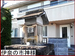 現・五日市街道に合流した先のバス停・伊奈坂上前に小さな祠があるがこれは「伊奈の市神様」(左)。伊奈村の市の守り神であるこの祠は寛文2年(1662)の建立。地元産の伊奈石で造られている。