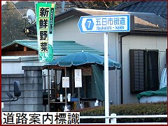 駅前に五日市街道の起終点に関する何かないかと探したが何も見つからんのです。せめてあったのが現・五日市街道のスタート点を表す「道路案内標識」(右)のみでした。