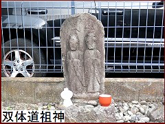 その途中の石塔が集められた場所に「双体道祖神」(左)が。このような夫婦道祖神を見ると、なぜかほっこりと。