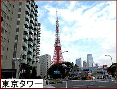 赤羽橋を渡ると先ほどから見えていた「東京タワー」(左)が目の前に。その先の赤羽橋交差点を渡ると道路はY字型に分かれるが、ここを右へ行く道が旧鎌倉街道。今回はちょっと寄り道したいのでY字の道に入らず交差点を右へ。
