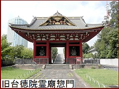 日比谷通りに出て数分、左手奥の立派な門は「旧台徳院霊廟惣門」(右)。二代将軍秀忠の霊廟があった場所だが先の大戦で霊廟は焼失。惣門だけは焼失を免れたのだが この惣門を見ると霊廟がいかに絢爛豪華であったかが伺い知れる。