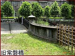 一石橋のすぐ上流に架けられている橋は常盤橋だが さらにその上流に架けられている石橋は明治10年(1877)に架け替えられた「旧常磐橋」(左)。気が付きにくいが常盤と常磐が使い分けられている。