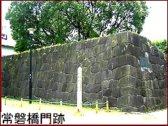 橋を渡ると石積みの枡形があり その奥が「常磐橋門跡」(右)。