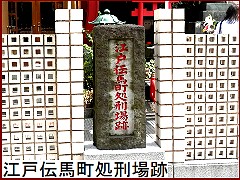 大安楽寺周辺一帯は江戸時代270年間に渡って伝馬町牢屋敷があった場所。全国から獄送りされた囚人は数十万人とも云われている。大安楽寺境内の地蔵尊がある場所が死刑場だった。