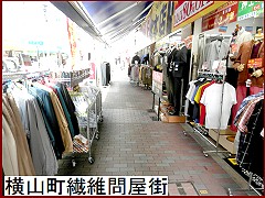 ミステリーを残したまま街道に戻り5~6分、見渡すかぎり衣料品店が続くが ここは江戸時代から続く「横山町繊維問屋街」(右)。右に曲がっても、左に曲がっても衣料品店。圧巻! |