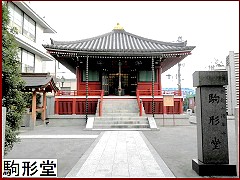 名称の由来は諸説あるが隅田川から見るとまるで白駒が馳けているようなので「駒馳け」が訛ったとも、観音様へ寄進する絵馬を掛けたので「駒掛け堂」と呼んだのが訛った、とも云われている。