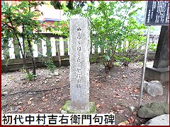 境内左手に歌舞伎俳優の「初代中村吉右衛門句碑」(右)という思わぬものが。高浜虚子に師事して「ホトトギス」の同人にもなったという。 女房も 同じ氏子や 除夜詣で |