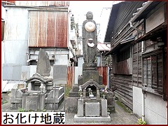 街道に戻る途中に見たのが「お化け地蔵」(右)。享保6年(1721)建立の石地蔵は大きな笠を被っていたが その笠が時々向きを変えるのでいつしか お化け地蔵 と呼ばれるように。 |