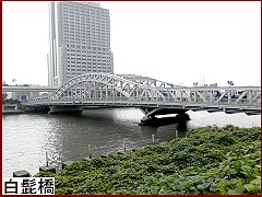 寄り道ばかりしてしまったが やっと「白髭橋」(左)の袂に到着。大正3年に木橋が架けられたが それまでは渡しであった。現在の白髭橋は昭和6年(1931)に架けられたもの。