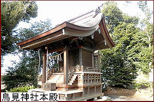 街道に戻ったらまたまた寄り道を。今度は白井市に多い鳥見神社。拝殿はごく普通だが裏に回ると最近修復された「素晴らしい本殿」(右)が見られる。もともとは明和5年(1768)に再建されたもの。 |