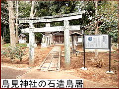 さらに数分歩いた先を左に入ると鳥見神社。入口の「石造鳥居」(左)は正徳3年(1713)に建てられたもので白井市の指定文化財。この神社は見事に神仏習合といった感じで境内の不動堂に お不動様が鎮座。また、銅鏡に十一面観音を取り付けた懸仏が代々伝わっているのだそうだ。