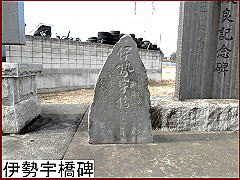 街道に戻るとすぐ先は神崎川に架かる白井橋であるが、その手前の土手下に据えられているのは「伊勢宇橋碑」(左)。