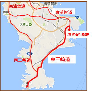 三崎へ向かっていた。東三崎道は東浦賀道の終着地である浦賀奉行所手前から分かれ、久里浜、野比、津久井、