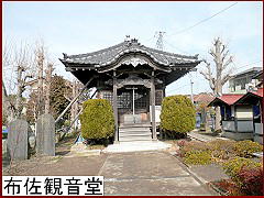 堤防を下りた所に鎮座しているのは「布佐観音堂」(左)。布佐河岸賑やかな頃、鮮魚の運送に使われた馬の慰霊のために問屋、馬主たちが建立したという。本尊は馬頭観音だが魚藍観音も祀られている。