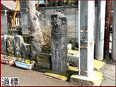 ちょっと荒れた感じの「金毘羅神社」がある。 その先は住宅街の中を通っていくのだが ここがちょっと複雑。「成田不動道標」が見えたら左に曲がり すぐに右へ曲って行く。