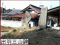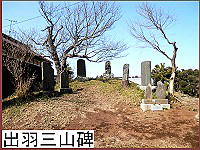 坂を上りきって県道に合流すると左側に馬頭観音があり その先右側には出羽三山碑が。