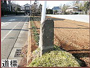 しばらく歩くと えびや商店の前に「道標」(左)が1本。刻まれている文字は『東 白井道 西 江戸 東京道』。