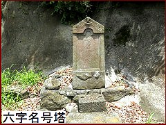 ほどなく県道に合流。しばらく歩くとコンクリートで固めた崖下にひっそりと立っているのは延宝6年(1678)造立の「六字名号塔」(右)。 |