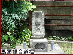 不動橋を渡ったら左へ入り高速道路の下を進むと「馬頭観音道標」(左)がある。台座に「右浦賀 左金沢」とあるが元々この場所にあったわけではない。説明板によると文政5年(1822)に建立されたが高速道路の建設により昭和59年(1984)に移設をよぎなくされ現在地に。
