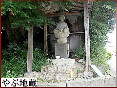 古道の雰囲気残る木古庭の里に鎮座する享保9年(1724)の「やぶ地蔵」(左)は先ほどと同じ座り地蔵。 木古庭村と平作村の境界に祀られていたことから境地蔵とも呼ばれている。