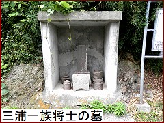 山裾の鄙びた道を歩いていると崖下に「三浦一族将士の墓」(左)と刻まれた石塔が小さな祠の中にひっそりと立っている。側面に「昭和十一年・・・・・・・・」とあるが詳しいことは分からない。