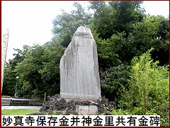 曹源寺から三浦道に戻り十数分、妙真寺の参道に「妙真寺保存金 并(ならびに)神金里共有金碑」(左)が見える。