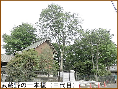 熊野宮交差点まで来たら また寄り道を。冒頭にも説明したようにこの辺りは家が一軒もない茫漠とした原野で 逃げ水の里 と言われていた。その中に一本の巨木が聳え立っており街道を往来する旅人の良き目印。それが「武蔵野の一本榎」(左)。宝永年間(1704~11)にはすでに樹齢数百年だった。残念ながら寛保年間(1741~44)に枯死。2代目も大正3年(1914)に倒壊。現在の榎は3代目。