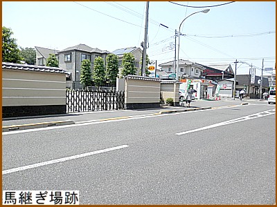 この先から道路の幅が広くなっているが ここから旧小川村。その広くなった部分は 小川村の開発者・小川九郎兵衛が明暦3年(1657)に開設した「馬継ぎ場跡」(右)。馬継場が開設された事によって小川村は大きく発展。正徳3年(1713)には荷馬158頭が飼育されていたという。