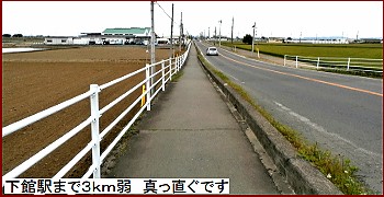 下妻街道のこの先は益子を通って奥州街道の喜連川まで約60km。 途中の真岡鐡道益子駅以外は公共