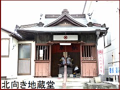 寺院が何カ所か見られる。 大谷川に架かる野殿橋を渡り左へ曲がるとその先は遥か彼方まで真っ直ぐな道。