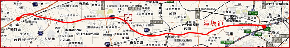 豪徳寺、経堂、千歳台、上祖師谷を経て調布に入り甲州道中に合流して滝坂を下っていった。