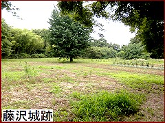 (左)の畑。表示等は一切無い。小田氏の居城・小田城が豊臣秀吉軍に攻められ落ちると その支城であった藤沢城も廃城となった。