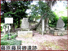 (右)。後醍醐天皇の側近であった藤房は北条高時によってこの地に配流。藤房が頭髪を切って埋めた地であると伝えられることから髪塔塚とも。